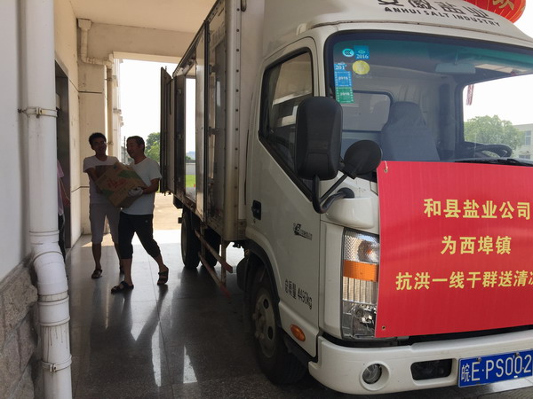 今年入夏以來和縣連日暴雨,受災嚴重,外洪內澇,受災民眾也不在少數。7月26日上午,在縣機關工委的組織下,和縣鹽業公司同全縣省、市駐和單位為戰斗在抗洪搶險一線的人員送去這個夏天的“清涼”。