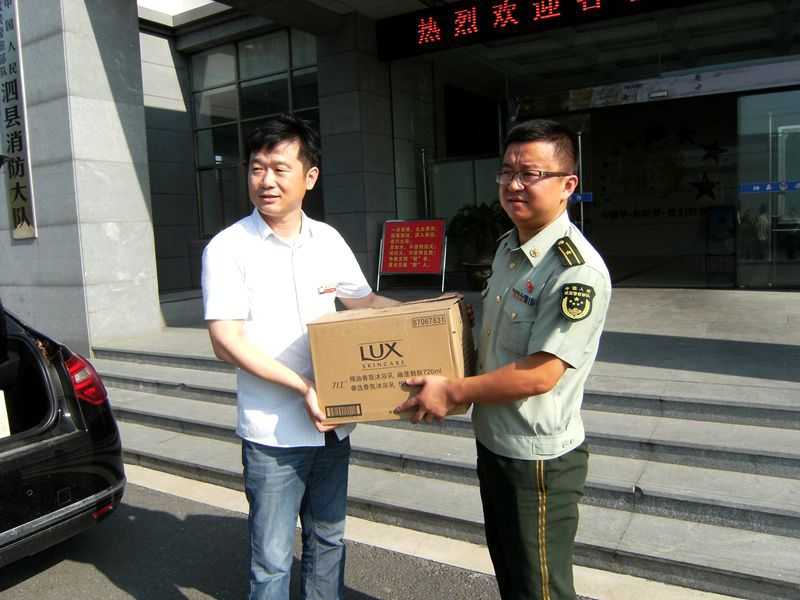 邢厚生一行為消防官兵送去了防暑降溫用品,并代表泗縣公司向消防官兵致以節日祝賀和誠摯問候,對消防官兵多年來對泗縣公司消防安全和經濟發展作出的貢獻表示衷心感謝。消防大隊領導對邢厚生一行的到來表示熱烈歡迎,并表示將繼續發揚人民軍隊的優良傳統,盡職盡責,確保一方平安。