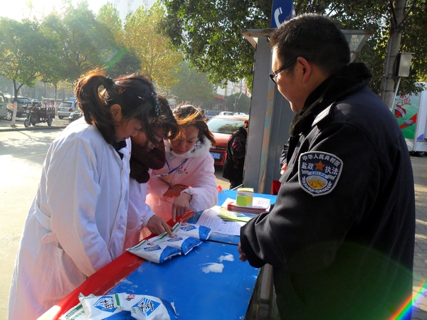 在本次活動中,阜陽市局設(shè)立宣傳咨詢臺,宣傳展架4個(gè),擺放精心準(zhǔn)備的宣傳資料和傳單,展示近期在市場查獲得各類假冒鹽品,現(xiàn)場接受市民咨詢散發(fā)宣傳單300余份,向群眾宣傳普及鹽業(yè)法規(guī),并推出了現(xiàn)場教市民辨別真假碘鹽的活動,咨詢臺前觀看宣傳圖版和前來咨詢的群眾絡(luò)繹不絕,廣大市民對國家為確保民生,食鹽專營的政策深表理解和支持。市領(lǐng)導(dǎo)對宣傳點(diǎn)進(jìn)行慰問檢查時(shí),對阜陽市的鹽政管理給予了充分肯定和認(rèn)可,并鼓勵(lì)大家再接再厲再創(chuàng)佳績。