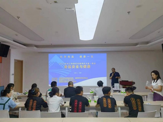本次宣傳活動由合肥市經信局、合肥市科協主辦,包河區婦女兒童服務中心承辦。合肥鹽業營銷中心副主任方巖分別從“關于鹽的一些事”“甲狀腺與碘的那些事”“齁不住的中國人要減鹽”三個方面,向參會人員普及了食鹽的主要成分、科學補碘、健康減鹽等知識?;訂柎瓠h節,參會人員踴躍參與,積極發言,現場氣氛熱烈。本次活動進一步加強了碘缺乏病防治知識和食鹽科普知識的宣傳教育,提高了群眾科學補碘和安全用鹽意識,讓“少吃鹽、吃好鹽、用好鹽”的理念更加深入人心。