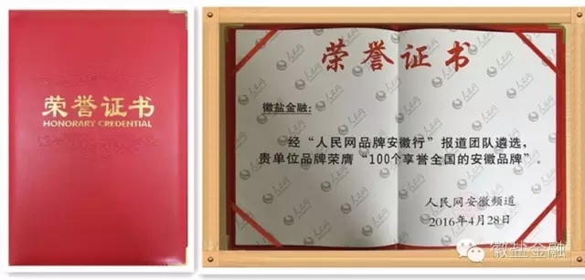 徽鹽金融榮獲人民網“100個享譽中國的安徽品牌”獎項