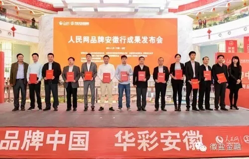 4月28日下午,由人民日報社安徽分社、安徽省互聯網宣傳管理辦公室、安徽省文化廳、安徽省國資委等共同指導,人民網安徽頻道主辦的“人民網品牌安徽行”成果發布會在合肥舉行。安徽鹽業金融信息服務有限公司(簡稱徽鹽金融)應邀出席本次發布會并榮獲“100個享譽中國的安徽品牌”獎項。